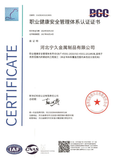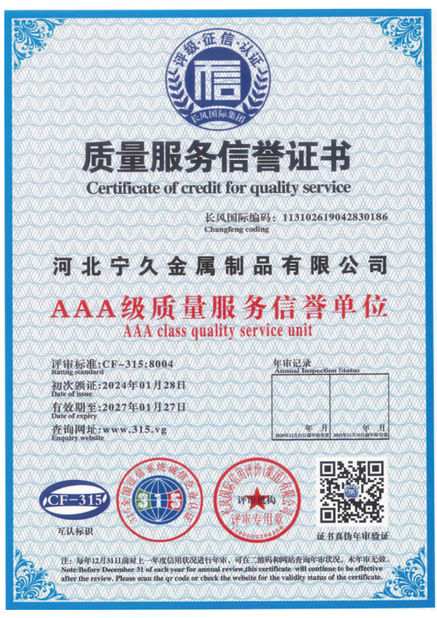 We have cooperated with China Railway 20th Bureau, China Railway 22nd Bureau, China Railway 14th Bureau, China Railway 25th Bureau, China Construction Technology Group, and China Construction Support Group for several years. Adhere to the business philosophy of putting customers first and providing high-quality services to our customers through the concept of “quality drama and service”. Welcome friends from all walks of life to visit Ningjiu Metal Products Co., Ltd. for guidance and business discussions.